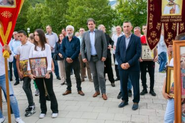 Потом је улицама града прошла свечана славска литија током које је извршено освећење темеља новог парохијског дома.