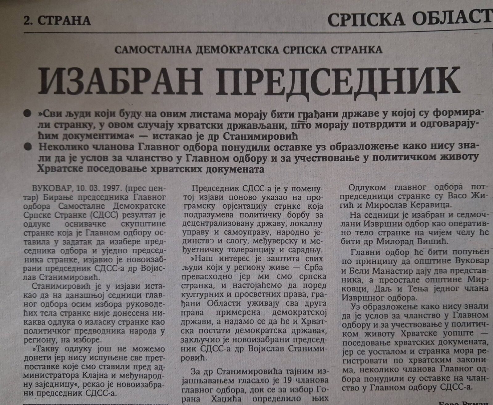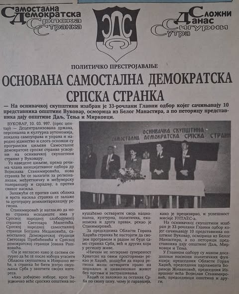 На данашњи дан, пре 29 година (5. март 1997), у Вуковару, тачније у Борову насељу, основана је Самостална демократска српска странка – СДСС (слика 1).