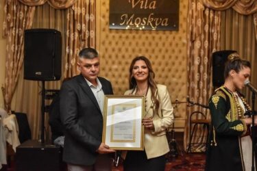 Младима из Удружења као мали знак пажње Дејан Стошић из Смедерава, заслужан за повезивање и довођење више стотина ђака из Херцеговине у обилазак Србије, уручио је реплику заставе Српска Херцеговина.