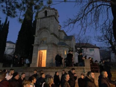 У билећком саборном храму Светога Саве вечерас је служен молебан, у знак подршке страдајућој СПЦ у Црној Гори, због усвајања дискриминаторног Закона о слободи вјероисповијести.